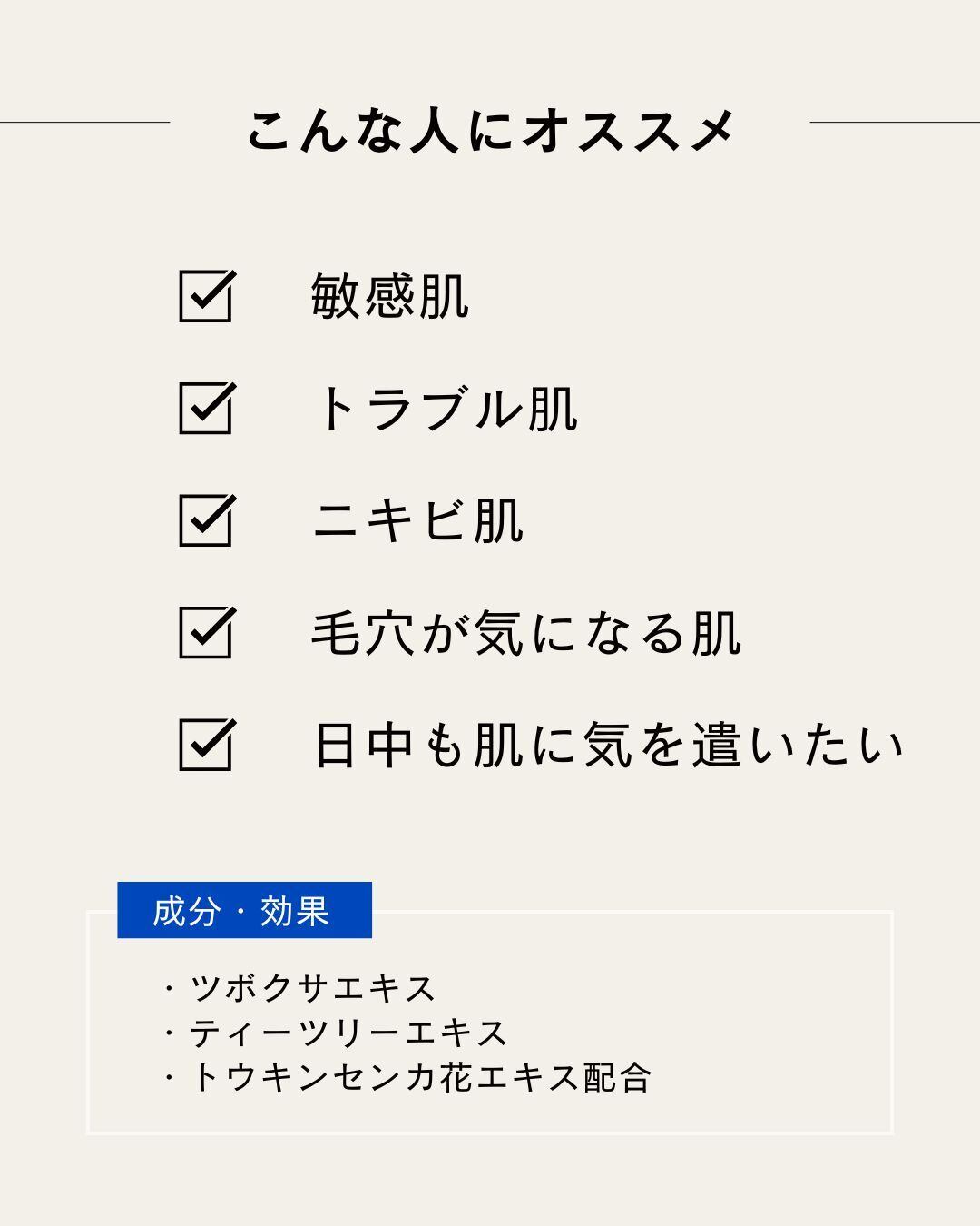 ・ツボクサエキスやティーツリーエキス配合で敏感肌やニキビ肌を優しくケア