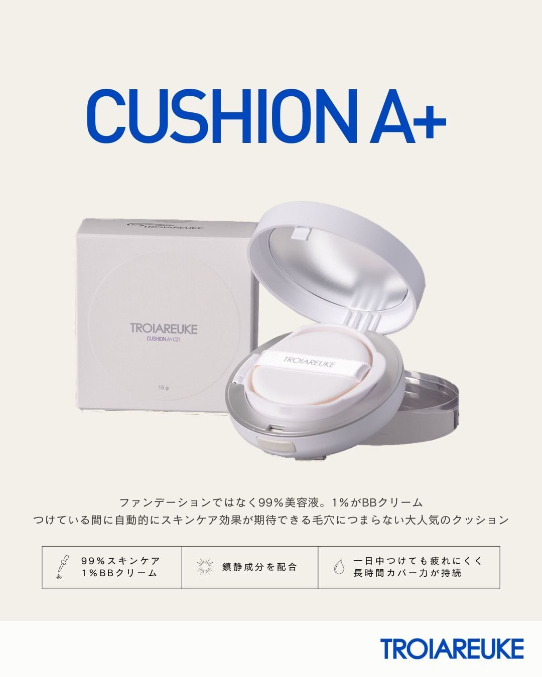 99%スキンケア、1%メイクアップのスキンケアクッションファンデーション