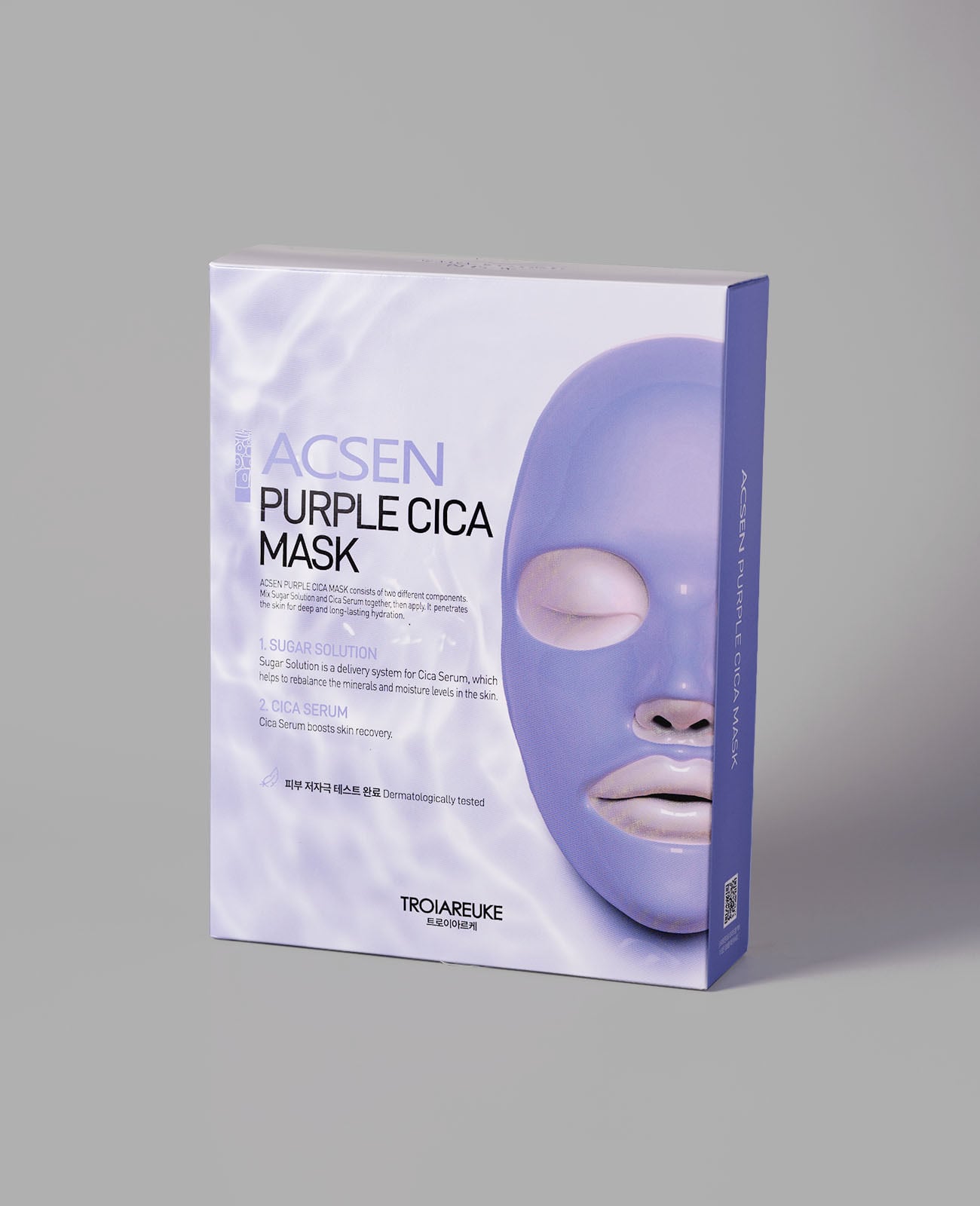 普通のパック=水+粉で作りますが、CICAパープルマスク=美容液50g+糖パウダー50g → 計100gの“濃縮美容液”を顔全体に。