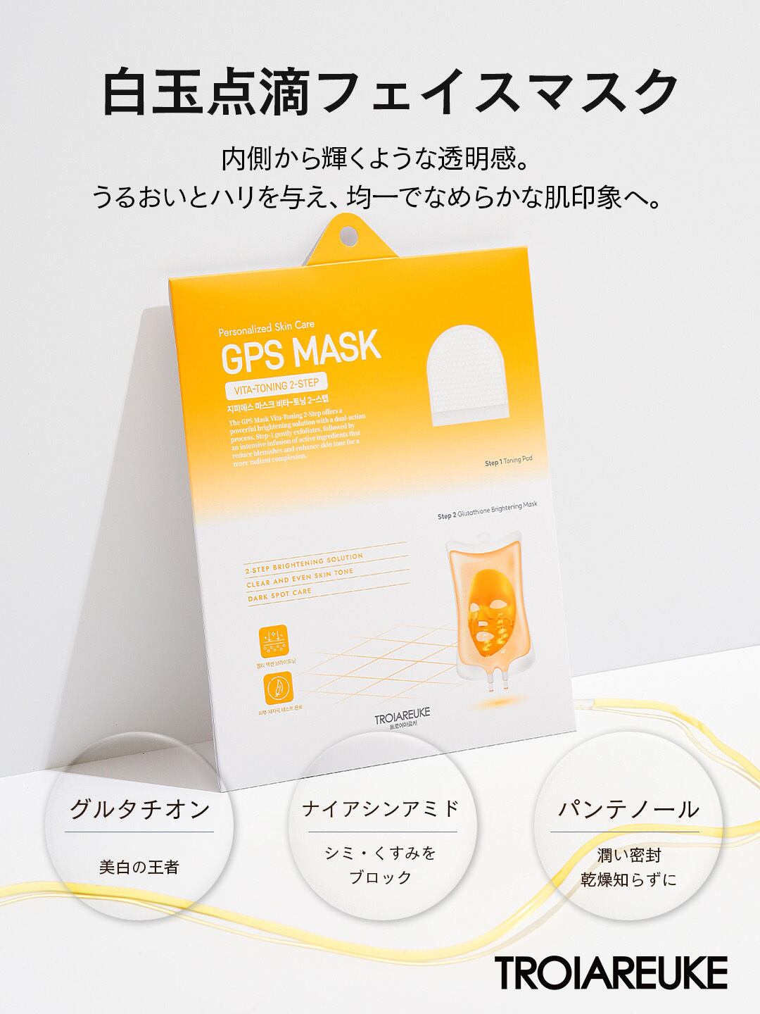 ブライトニングマスク: グルタチオン、パンテノール、アスコルビルリン酸ナトリウム