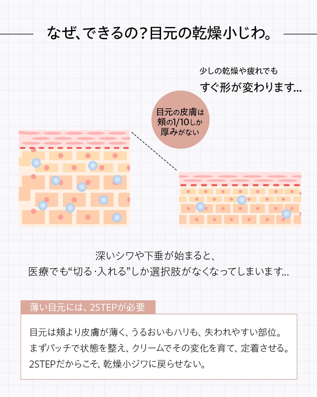 皮膚が最も薄く、乾燥・摩擦・まばたきの負担を1番受け続ける場所だからです。