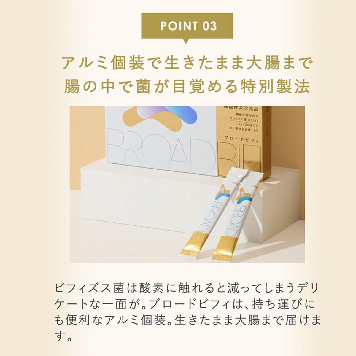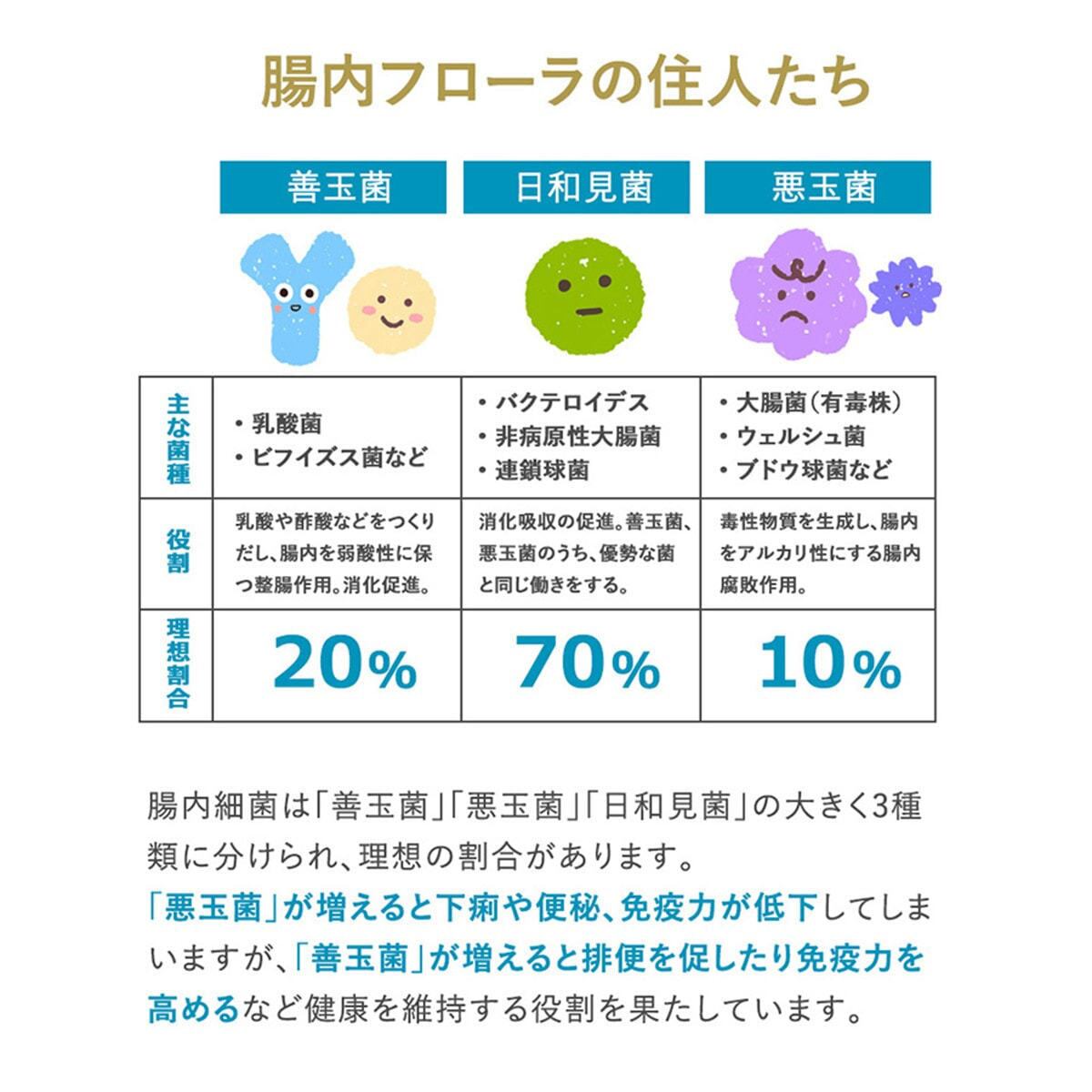 ビフィズス菌は年齢とともに減少するため、毎日の食事に加え、サプリメントを補うことが大切です。