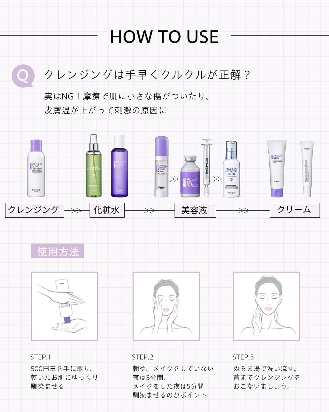クレンジング、洗顔、化粧水、美容液、クリーム...